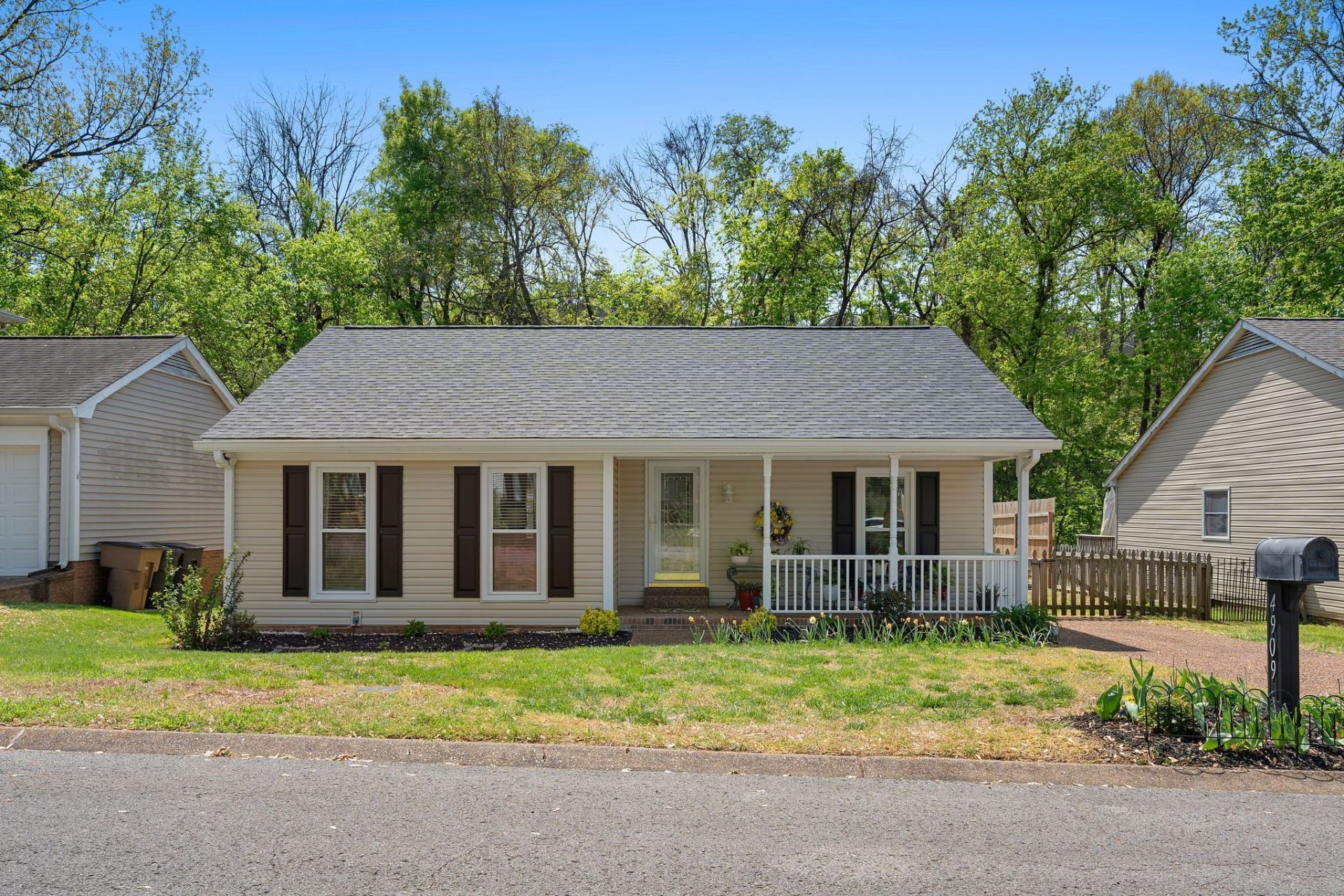 One-level living! If you're looking for peace and serenity in south Nashville and still want to be centrally located to everything, 4909 Yorkshire Rd is for you! Conveniently located off of Old Hickory Blvd and a quick 10-minute drive to I65 or I24. This 2bd-2ba home offers a peaceful atmosphere in an established neighborhood, with a trickling creek and a fully wooded backyard view, fenced in backyard, covered porch to relax, a rocking chair front patio, and a great space for pets and beautiful gardens! Renovated and upgraded into a spacious open floorplan, with an amazing kitchen, new bay windows, new appliances, upgraded bathrooms, new lighting throughout, new flooring and more! The fireplace in the living room is set up for an electric fireplace. All the maintenance has been done for you - new roof and vinyl siding (with 50-year warranty), encapsulated crawlspace with dehumidifier and sump pumps, new HVAC, and a 12x12 detached storage shed with shelving and 2 lofts. This home was renovated to be the Seller's forever home, but now they need to move closer to family. Come enjoy the babbling creek, listening to the birds, and get ready to enjoy your beautifully remodeled home! **Full list of renovations available. **Buyer may qualify for up to $17,500 in grants through Bank of America to help with down payment and closing costs (Listing Agent can provide Mortgage Loan Officer info for Buyer to see if they qualify).
